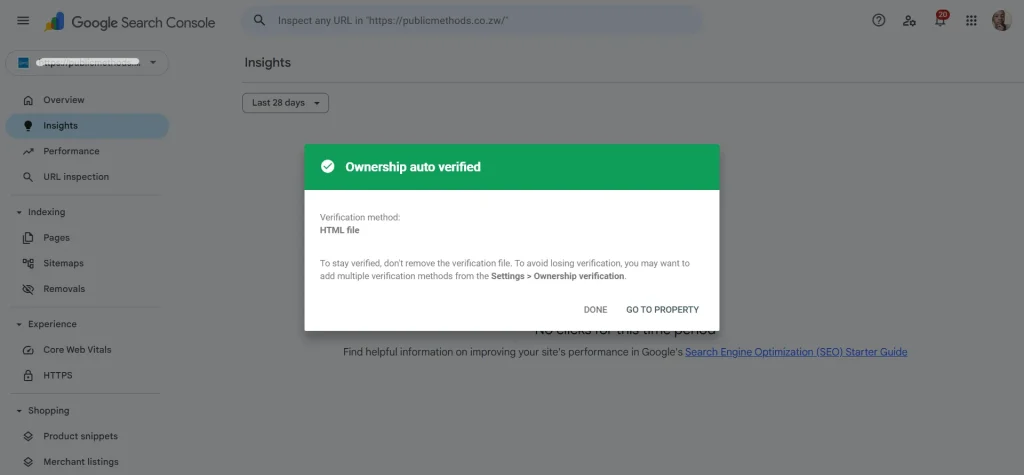 - HTML File Verification: Upload an HTML file Google gives you to your website’s root folder.