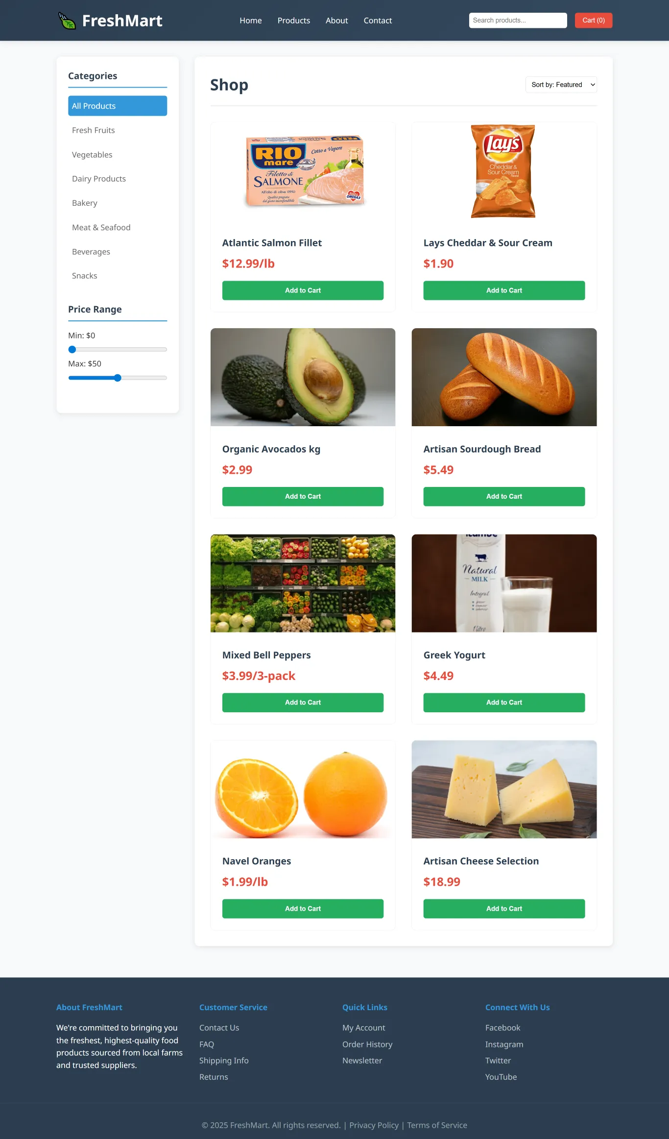 - Product filtering